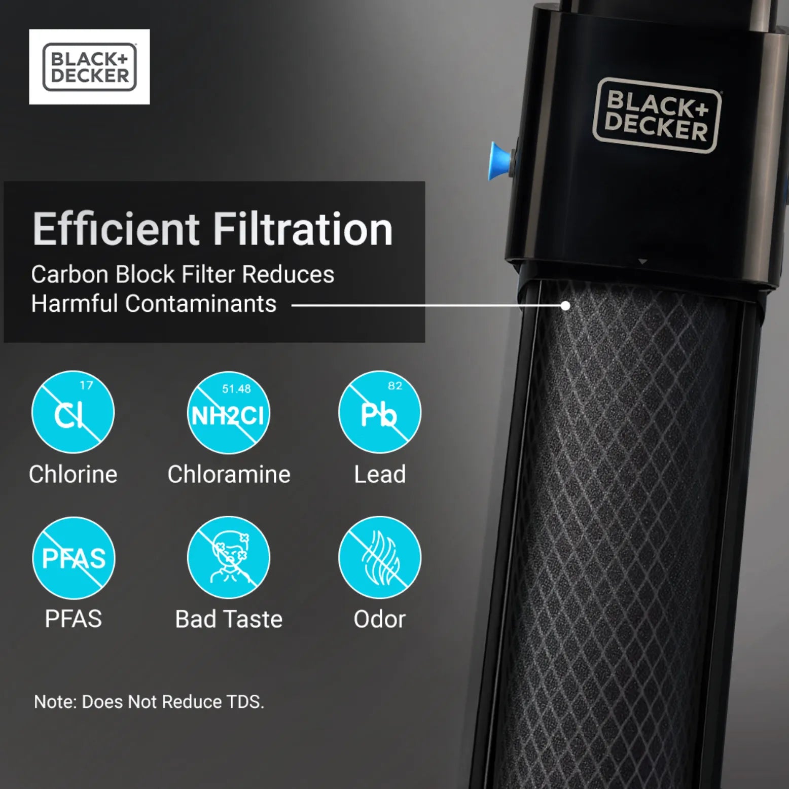 The advanced Carbon Block Filter reduces chlorine, chloramine, lead, PFAS, bad taste, and unpleasant odors.
